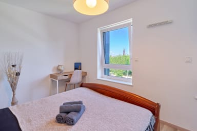 Appartement moderne 2 chambre en 4e étage avec ascenseur pour 4 voyageurs avec grand salon-séjour, proche centre-ville, garage fermé et balcons privatifs