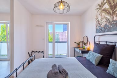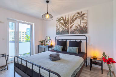 Les deux chambres offrent chacune un espace confortable, avec rangements et accès au second balcon.