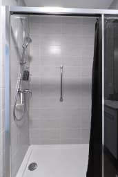 La salle de bains dispose d’une machine à laver, pour un séjour pratique et autonome.