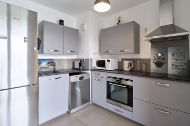 La cuisine moderne est entièrement équipée pour vous sentir comme à la maison.