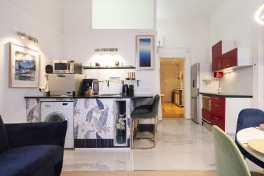 Espace, quiétude, fonctionnalité et modernité : dès la double-porte d’entrée franchie, vous serez immanquablement séduits par cet appartement entièrement rénové à l’atmosphère élégante et raffinée, son charme authentique, son mobilier soigné, sa décoration stylée et unique, ainsi que par la présence de tous les d’équipements neufs nécessaires à un séjour haut de gamme.