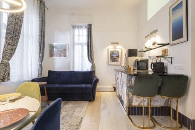 votre réservation. La chambre et le séjour sont équipés de fenêtres donnant sur la rue : bien que situés en retrait de la rue et au 1er étage, cela reste un logement citadin de plein centre-ville.