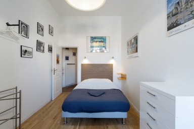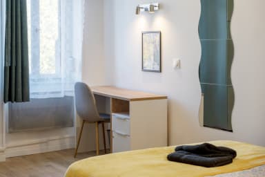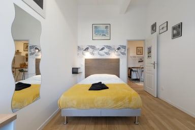 🔇 Les chambres sont équipées de fenêtres donnant sur la rue : bien que situées en retrait et au 1er étage, cela reste un logement citadin de plein centre-ville